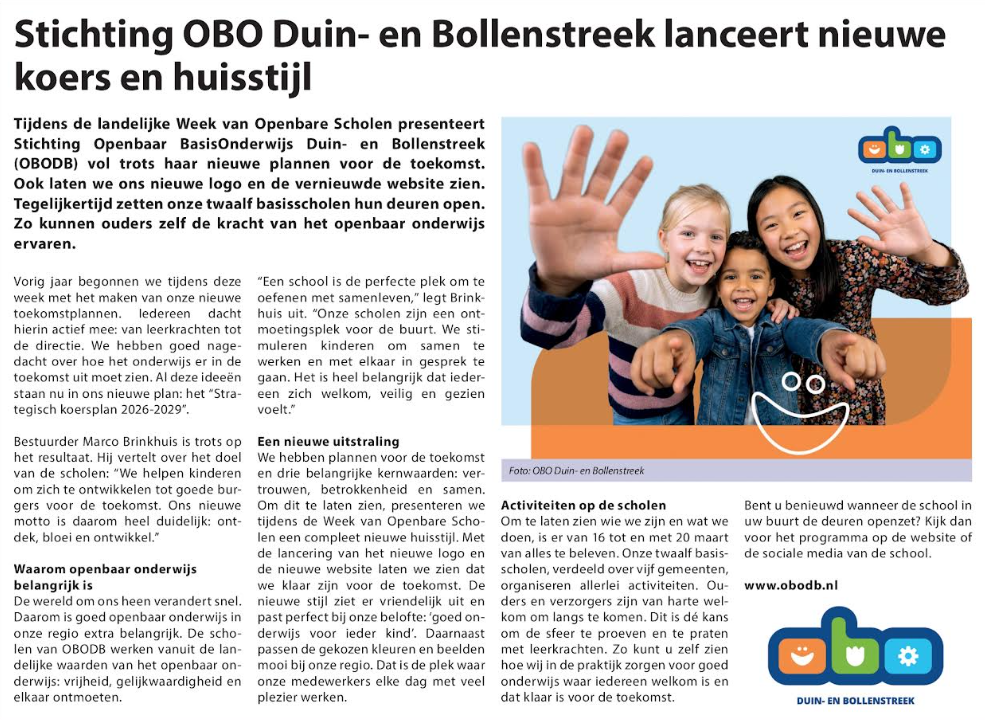 Op de twee locaties van openbare basisschool De Dubbelburg volgen kinderen uit Valkenburg, Oegstgeest, Katwijk, Rijnsburg en omstreken met veel plezier openbaar onderwijs. Onze kernwaarden ontmoeting, creativiteit, groei en eigenaarschap bieden we in alle aspecten van het onderwijs aan.